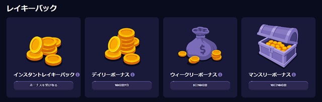 - デイリーボーナス(1日ごとにもらえる報酬)