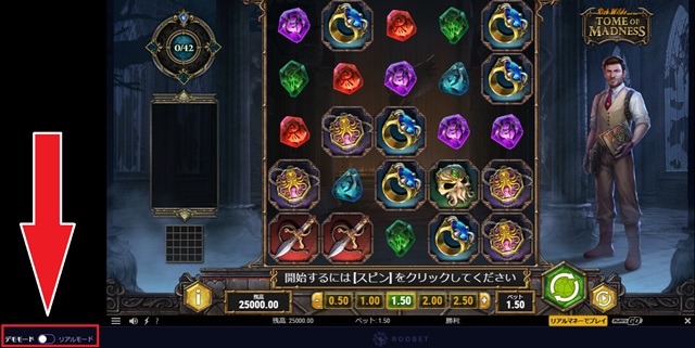 ルーベットのスロットは無料プレイ可能です。無料で遊びたい場合は、ゲームを起動後、ゲーム画面左下にあるつまみを「デモモード」に切り替えてください。